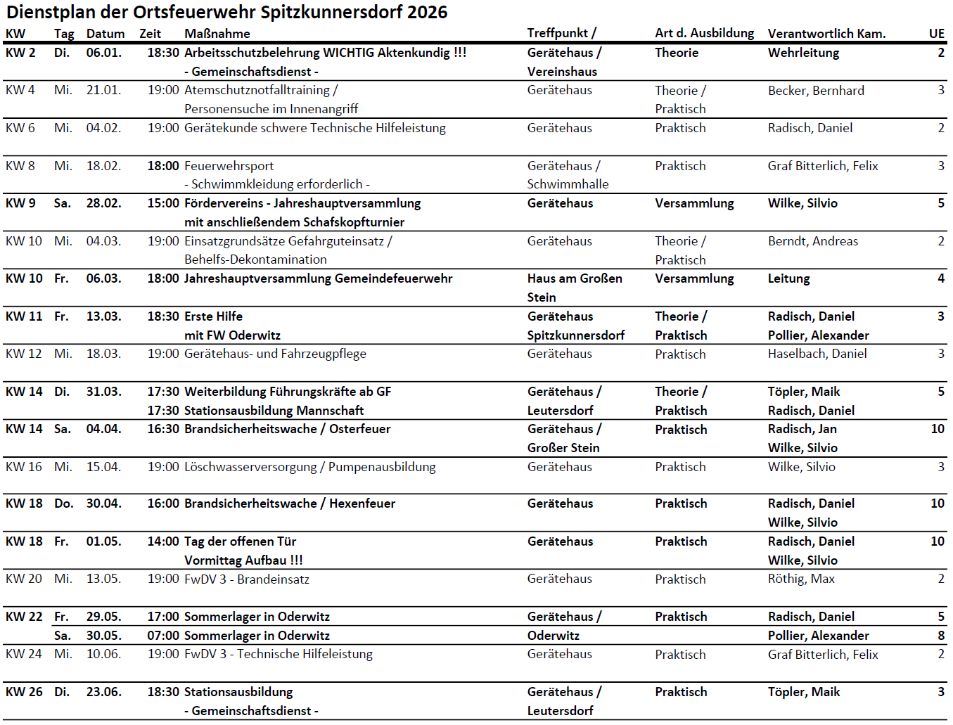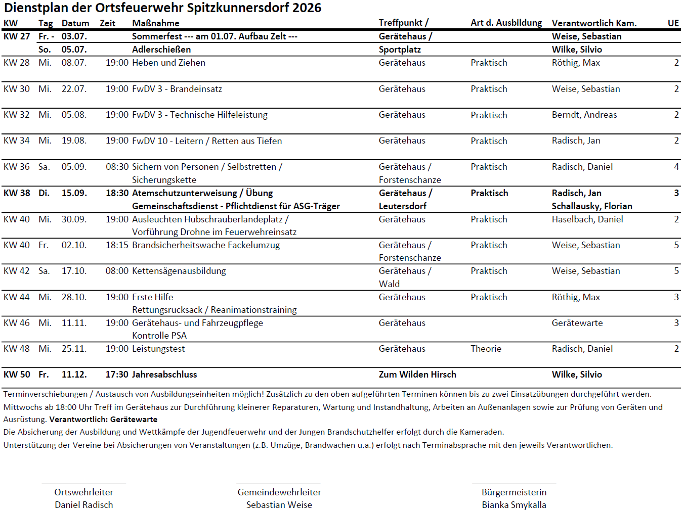 Ausbildung Der Dienstplan liegt einmal als Link zum speichern, und zum anderen als Bild auf dieser Seite vor. Dienstplan der Aktiven für 2026zum speichern hier klicken Dienstplan der Jugend für 2026Gruppe 1 hier klickenGruppe 2 hier klicken